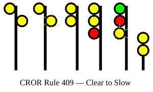 | 409 | Clear to Slow | Proceed, approaching next signal at SLOW speed. |