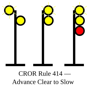 | 414 | Advance Clear to Slow | Proceed, approaching second signal at SLOW speed. |