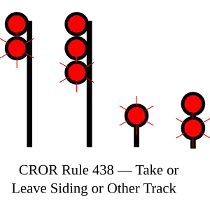 | 438 | Take/Leave Siding Signal | Indications will be specified in the Special Instructions for each specific application of this signal. |