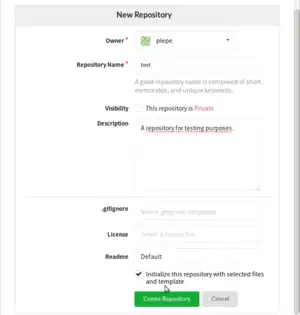 Important: Check the box "Initialize this repository with selected files and template". Otherwise it will be a plain repository and you would need to push an existing Git repository there.