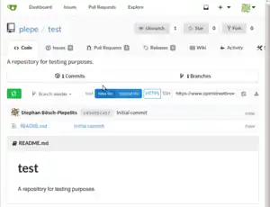 You are on the main page of your repository. You can identify all the files in the repository (currently only README.md). There are links where Issues and Pull Requests can be discussed, but this might be interesting later-on.