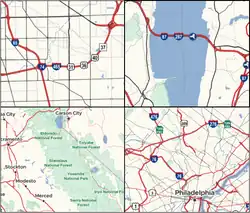- ↑ See OpenStreetMap Americana's custom shield coverage maps. For a complete list of supported
