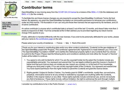 To facilitate this and future license changes you are required to accept the OpenStreetMap Contributor Terms (full text below). By agreeing, you grant the OpenStreetMap foundation an irrevocable permission to relicense your contributions under any free license. The foundation in turn can only pick those free licenses that are approved by its members, and 2/3 of active contributors.