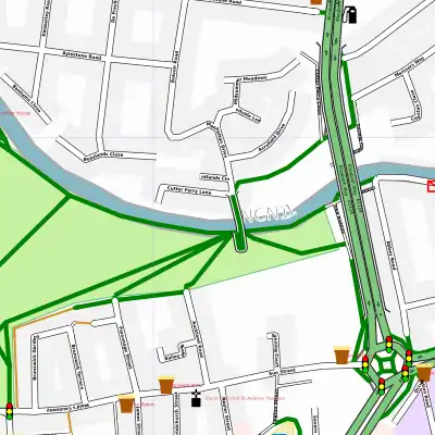 This small river in the center of [Rauma] is edged with murals. They are absolutely straight and they have sharp corners. You can also see that the bridge is centered in the editor but not in Osmarender because the river is shifted. --Plenz 07:04, 23 November 2007 (UTC)