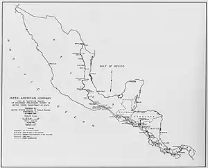 1933 map of the Inter-American Highway portion of the Pan-American Highway.