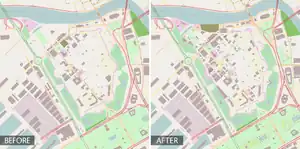 Before and after the Pateros Mapping Party. This shows how parts of northern Pateros (Sto. Rosario) and Pasig (parts of Buting and San Joaquin) looked in OpenStreetMap just before the Pateros Mapping Party and a week after. Buildings, landuses, and POIs were added and the street network including names were corrected and updated.