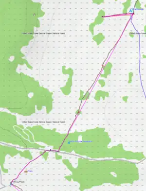 | Trail (dotted line) | The highway=path and surface=ground should be used for all trails. Optional tags is foot=yes. Please tag any trails (or tracks) open to burro packing with horse=yes. Name trails with endpoints at camps "CampOne - CampTwo Trail" using a dash vice the word "to" as every trail goes both ways. Rename any that have the "to" left with a dash. If a trail can quickly diverge to many different camp (has one or more forks in between and/or intersects with roads), simply name the with the name of the closest trail. |