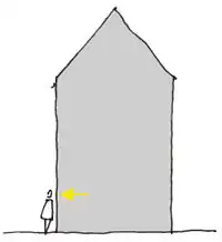 If you place a leveling staff perpendicular to the facade, you can roughly (approx. 5% deviation) determine the dimensions of a facade.