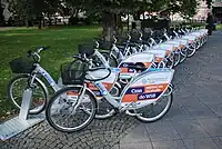 Nazwa sieci wypożyczalni rowerów (Vélo'v in Lyon/France, Vélib' in Paris/France,Vélocité w Besançon, le vélo w Marseille/France, "Villo" w Brussels/Belgium, bixi w Montréal/Québec i Toronto, dublinbikes in Dublin/Ireland, Barclays Cycle Hire w Londynie, etc.) |
