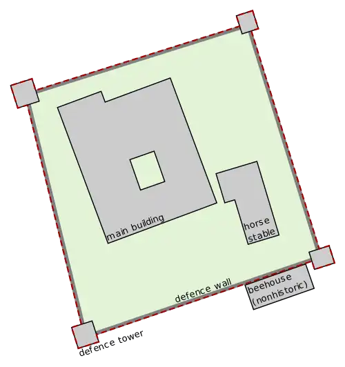 fosę. Park na terenie posiadłości prawdopodobnie nie powinien być uwzględniony, obszary ogrodów wymagają dyskusji.