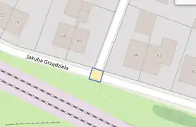 na linii drogi w miejscu gdzie znajduje się wyniesienie.