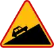 A-22: niebezpieczny zjazd | Na (jeśli zgodnie z kierunkiem drogi w OSM) incline=down lub incline=-xx% (z tabliczki T-9 pod znakiem)