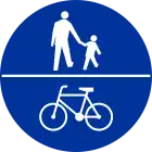 Droga dla pieszych i rowerów, oznakowana odpowiednimi znakami. Jeśli jest rozdzielona, należy dodać segregated=yes, jeśli współdzielona – segregated=no.