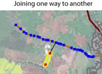 - Click to highlight the end node of the first way that is closest to the second way.