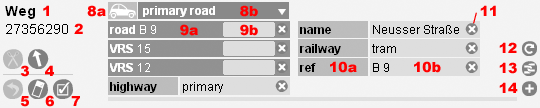 - Click the 'repeat' button (bottom right) to repeat the tags from the previously selected way or point.