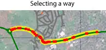 OpenStreetMap's map is made up of "ways". A way is a line that you draw on the map: it might be a road, a railway, a river, even a fence or a power line. Each way is a series of joined 'points' (or nodes).