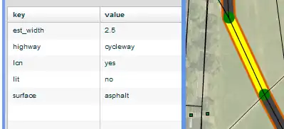 Clicking on a wide line shows all the data in the external dataset. However, some of the attributes may already match the OSM data.