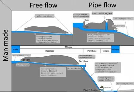 OSM community had worked to improve tagging and documentation to describe a lot of different features about hydro power systems.