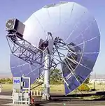 - Stirling engines: parabolic dishes focusing light onto a thermal engine.