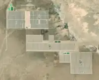 In satellite imagery: They can be easily distinguished by their size, location and the layout of the panels.