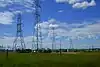 Steel lattice towers or H-frame structures. Some lines in urban areas use steel poles because of aesthetic concerns. Slender steel poles also used on MATL (remainder uses H-frames). |