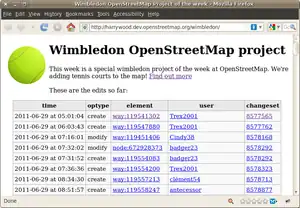 Harry Wood created a tennis edit tracker to see who was mapping tennis courts and how many:
