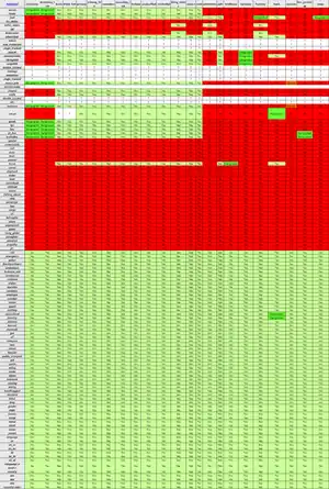 The following table is basically identical to the one found under Access-Restrictions extended for all highways, modes and roles. Please post suggestions for improvements to the comments.