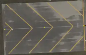 | Rendered as: | Between runways and taxiways. Potentially also mimicking the chevron pattern |