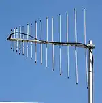 | Commonly called TV. An audio visual signal, in common use. Some common receiving antennas shown. |