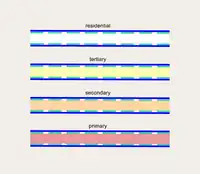 In the image at right I have designed a potential rendering scheme for buffered bicycle lanes. Note that there are two casings around the lines that represent roads. The inner casing is dashed (similar to diagonally striped buffers that surround bike lanes) and bright green (the color often used for bicycle pavement markings), the outer casing is a saturated blue (a color typically associated with bicycles in OSM).