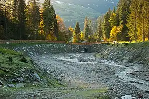 Definition: Barrier structures to reduce the speed of flow, prevent erosion and hold back debris on mountain torrents