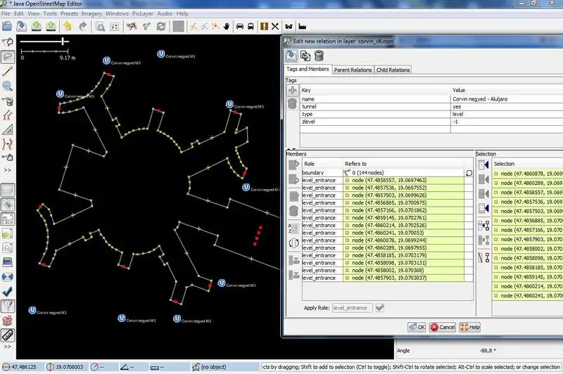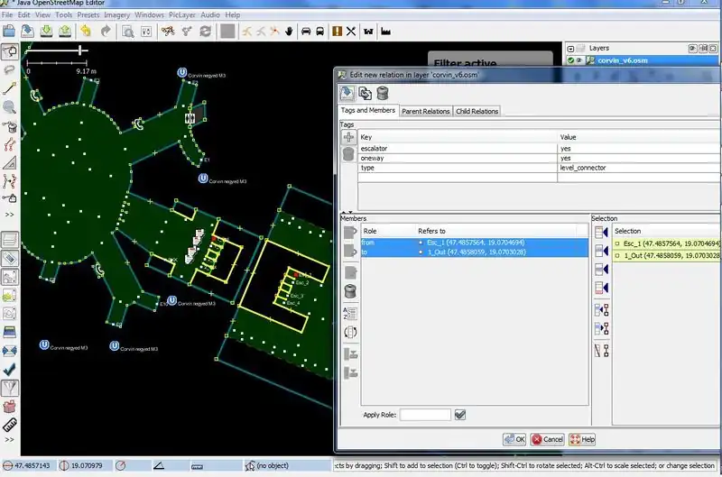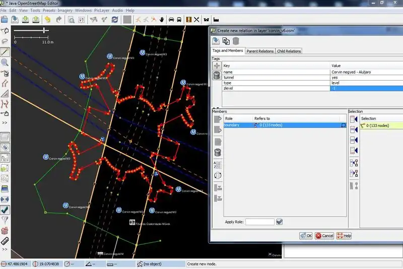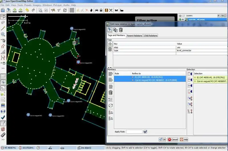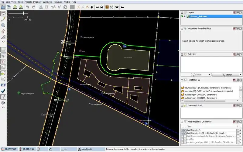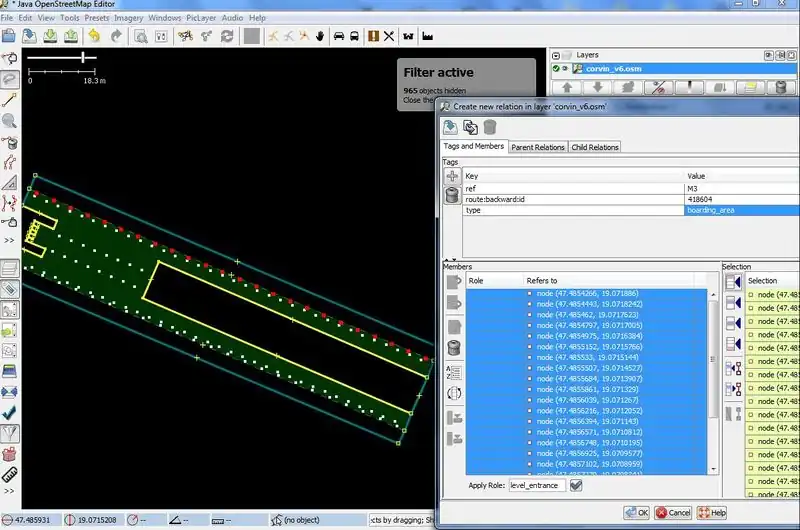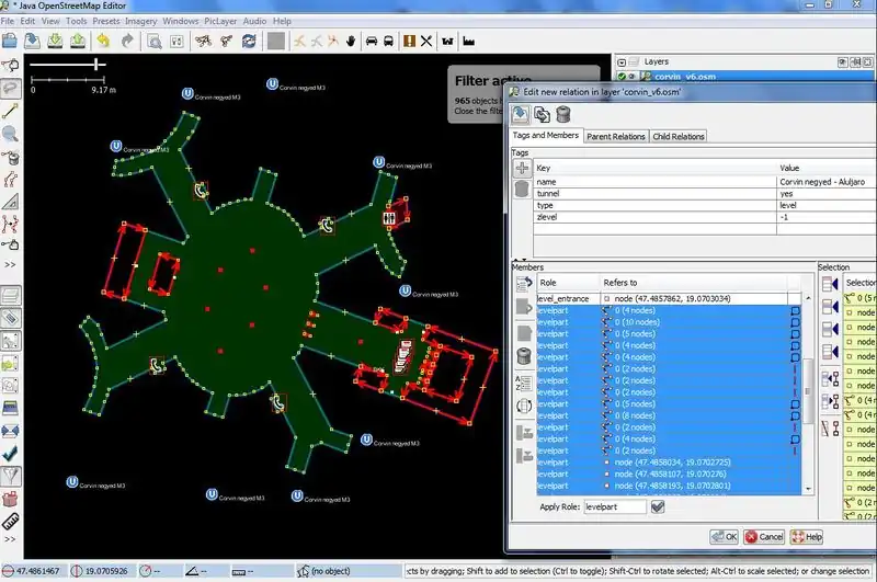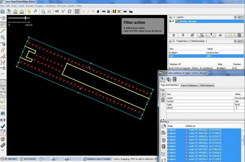 • for better visibility, create filter for facility, then disable this filter. Filter text: child (type:relation & facility:public & name:Corvin negyed M3)