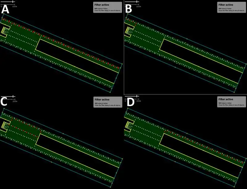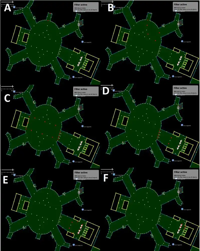 In many cases, reference points are placed between obstacles like in our example. In this case, the basic principle of a convex area is not met, because the reference points cannot be attached by a straight line thanks to the obstacle between. Restricted convex areas are created for such cases, meaning that the members of a restricted convex area cannot be connected