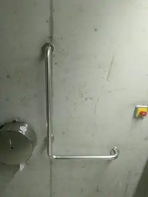 A wall-mounted grab rail in a vertical position (or which has a vertical part). | |