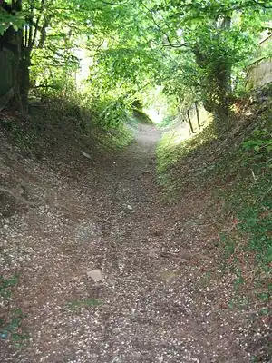 A hollow way or sunken lane is a "road which has over time fallen significantly lower than the land on either side".