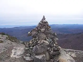 Höchster Punkt eines Berges, oft mit Gipfelkreuz, Triangulationspunkt oder Steinmännchen (cairn) |