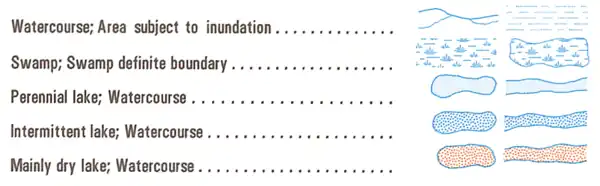 The rendering for a mainly dry watercourse in Geoscience Australia topographic maps is similar.