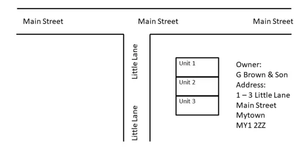 In the example in the diagram, each unit could be mapped as a separate building and the buildings could then be grouped in a site relation, tagged as: