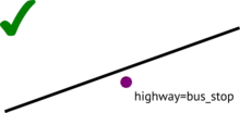 A stop or a station is a single object denoting an approximate location of where a vehicle stops to drop off and pick up passengers. It should be placed near a signpost or a platform, inside a station building, or between all the platforms for the stop.