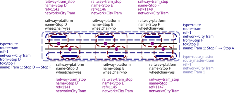 What's the alternative? Reintroducing stops and stations, obviously. Borrowing from the railway station tagging, now every kind of stop has a "main object": the one that's got all the important tags, like name, operator, wikipedia link, and reference number. Unlike PTv2, you don't need to copy these tags all over, on platforms, stop positions, stop areas and so on. Just one object — and preferably a node — describes the entire stop or station.