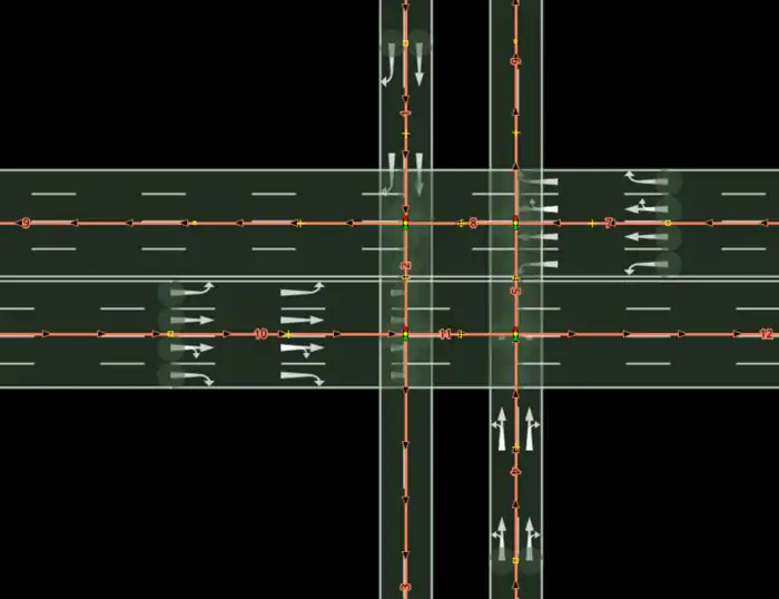 - Putting all traffic signals in complex multi node intersections into relation to their corresponding destination- (to-)way