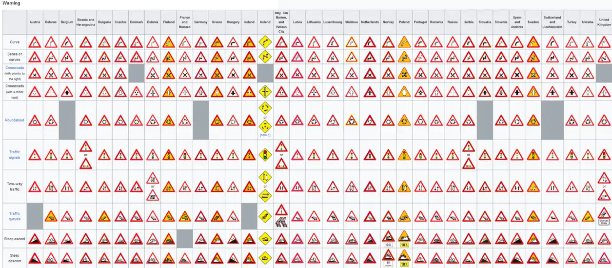 | Definition: | Map exact reference for each traffic sign in each countries legislation |