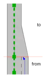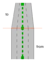 • lower: based on the (assumed or explicitly specified placement-values, determine an appropriate lane offset and connect adjacent lanes (see section below). Treat unconnected lanes of the From Way as ending.