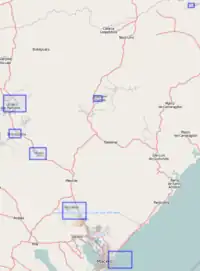 Muitas ruas, de várias cidades, já estão mapeadas. Se desejar imprimir os mapas dessas cidades (junto com um índice das ruas), siga os links abaixo. Os mapas estão disponíveis em PNG, SVG e PDF.