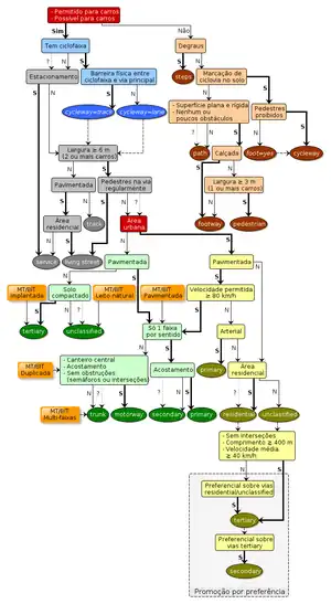 O fluxograma ao lado foi obtido por consenso após várias discussões com a comunidade brasileira. Ele foi projetado para usar apenas critérios mensuráveis, de modo a minimizar disputas. Como a realidade é mais complexa do que isso, espera-se produzir resultados aceitáveis na maioria quase absoluta dos casos; uma boa forma de expressar o objetivo é tentar obter um resultado "correto em pelo menos 95% dos casos, quase correto nos 5% restantes". Ao divergir do fluxo, uma forte sugestão é anotar a razão na etiqueta note para que outros possam entender o que você fez e possam concordar com o seu raciocínio antes de pensar em desfazer o seu trabalho. Discussões sobre este fluxo, bem como arquivos-fonte, podem ser encontrados no fórum.