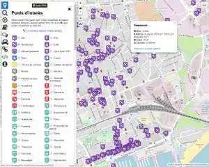 | Various OSM map [80] | QA | English, français | Displays all kinds of map in the same interface, with also a mobile version [81]. | Yes |
