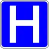 H2 | Hospital:indicação da existência de estabelecimento hospitalar e da conveniência de adotar as precauções correspondentes, nomeadamente a de evitar, tanto quanto possível, fazer ruído. | Usar amenity=