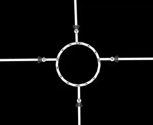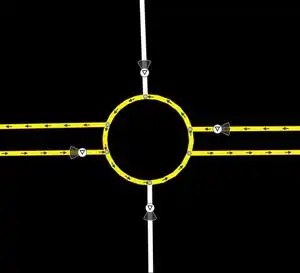 | Uma rotunda de formato padrão com quatro saídas/entradas simples. Cada entrada/saída deve ser ligada à rotunda usando um nó individual, formando um diamante. Uma rotunda de grandes dimensões pode ter oito ou mais nós. | ![]() |