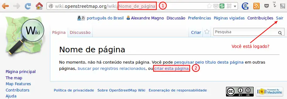 Atenção! Não vá criar uma página "Nome de página". Isso é só no exemplo acima! Coloque lá o nome para a página a ser criada.