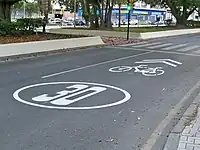 Además de carriles bici, en Málaga también existen carriles compartidos con tráfico motorizado señalizados con una marca horizontal o pictograma sobre la calzada. Para mapear estos carriles compartidos, usa cycleway=shared_lane como etiquetado adicional de la vía.